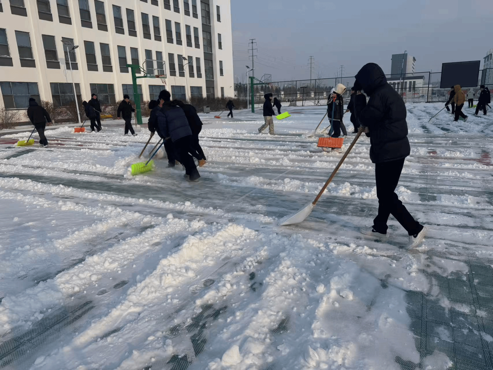 随后,大家手持铁锹、扫帚等工具,分工协作、默契配合,有人清扫路面浮雪,有人铲除堆积的积雪,也有人将积雪转运到集中堆放点,热闹的劳动场面成为冬日校园别样的风景。此次扫雪劳动教育活动,不仅有效清除了校园内主要道路、出入口的积雪,保障了师生的出行安全,更让学生在亲身体验中感受到了劳动的艰辛与快乐,增强了团队协作意识和社会责任感。