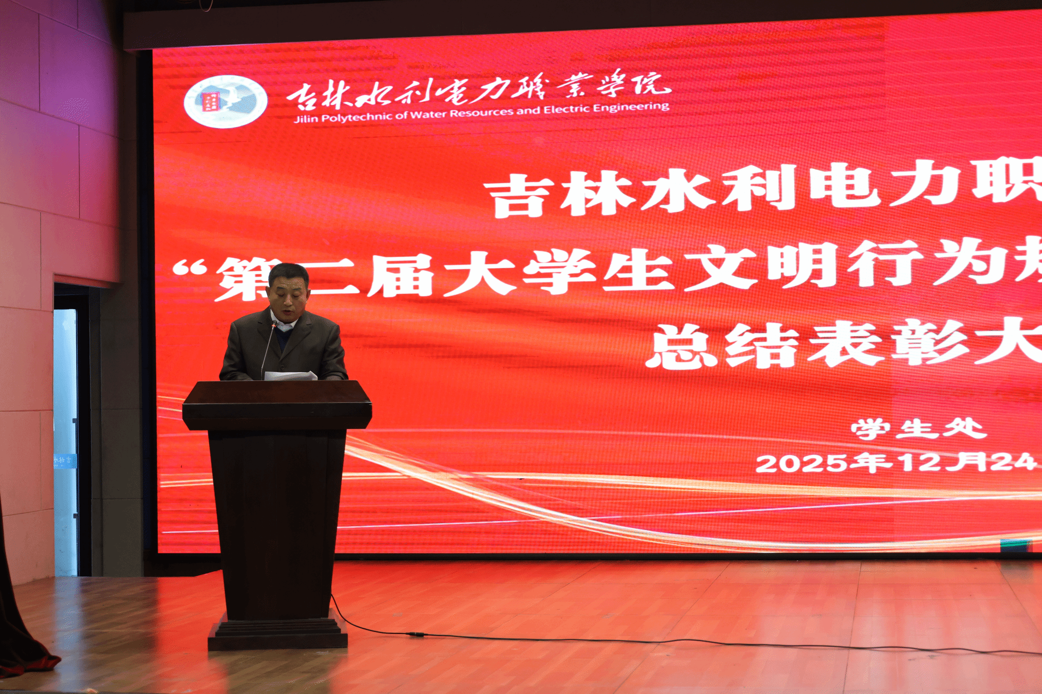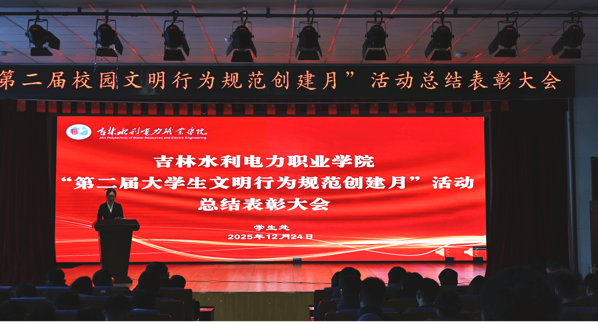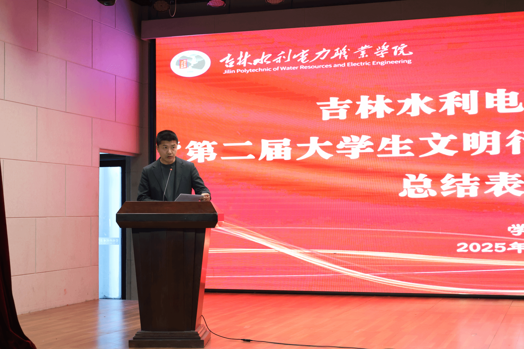 延民副书记在总结讲话中高度肯定活动成效,对全体师生在活动中付出的努力和展现的文明素养给予高度评价。他希望同学们把在活动中养成的好习惯保持下去,以文明为帆,做品德高尚的追梦人;以纪律为舵,做自律自强的追梦者;以安全为锚,做平安校园的守护者。他鼓励全体师生要以此次“文明创建月”活动为契机,以总结表彰大会为新起点,将基础文明规范内化于心、外化于行,继续发扬团结协作、锐意进取的优良作风,持续推动校园文明建设迈上新台阶,为打造学习氛围浓郁、文化底蕴深厚、“德技并修、知行合一” 的高水平水电校园而努力奋斗!